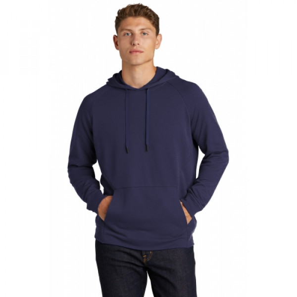 The casual ease of soft French terry in a versatile pullover. <br />::6.5-ounce, 59/41 combed ring spun cotton/poly French terry<br />::Tag-free label<br />::Three-panel hood<br />::Dyed-to-match elastic drawcords with black plastic tips<br />::Integrated front pouch pocket