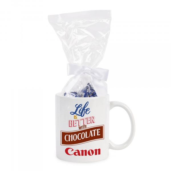- Includes 6 Lindt truffles presented in a mug drop bag with a white twist tie