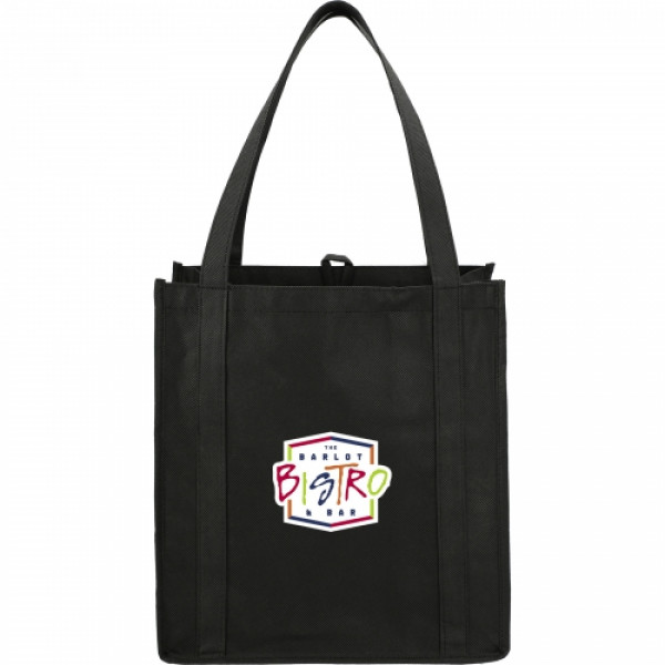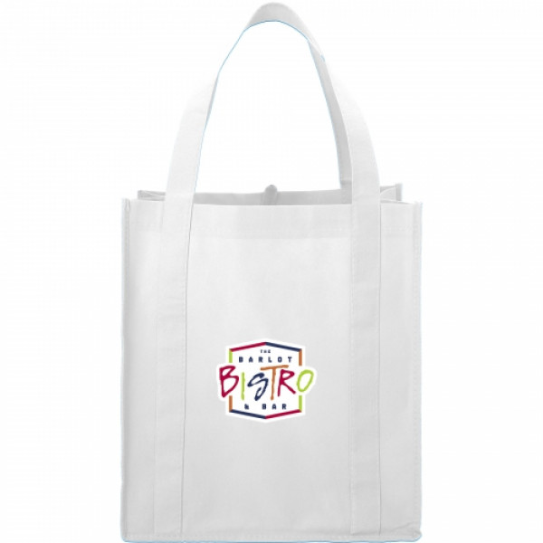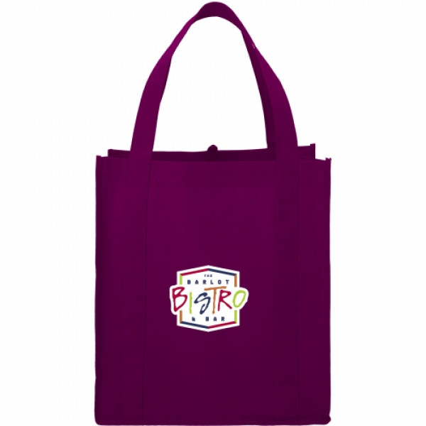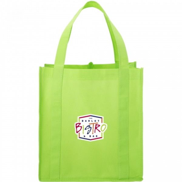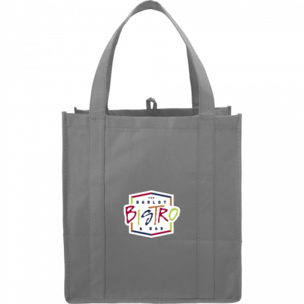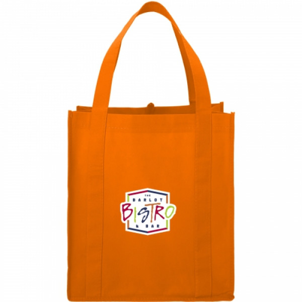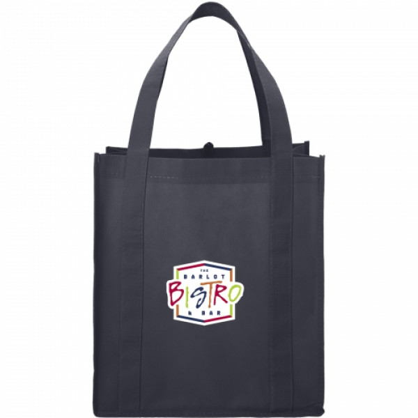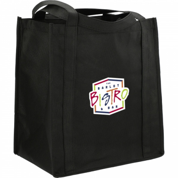 The Little Juno Non-Woven Grocery Tote features an open main compartment with double 22 inch reinforced handles and a supportive bottom board. ::It's also reusable and a great alternative to plastic bags.