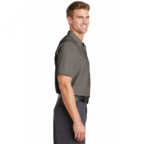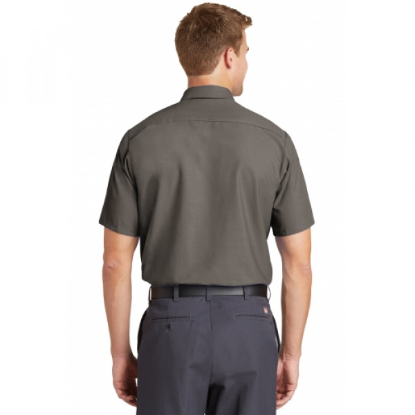 Red Kap puts the toughest materials and advanced stay-clean technology into this shirt so you get the most out of it. This hardworking IL50 style is tested through 50 industrial launderer washes.::4.25-ounce, 65/35 poly/cotton with Touchtex™ technology for superior color retention, stain release and wickability::Open collar with sewn-in stays::6 buttons with metal collar gripper closure at neck::Two button-through pockets::Bartacked pencil stall on left pocket