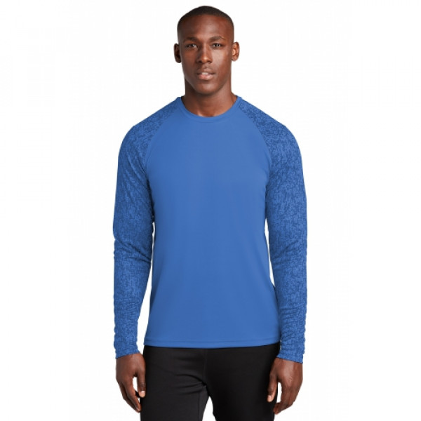 A subtle digi camo pattern gives this moisture-wicking performance tee a unique edge.::3.8-ounce, 100% polyester interlock with sublimated digi camo print::Removable tag for comfort and relabeling::Digi camo print on sleeves