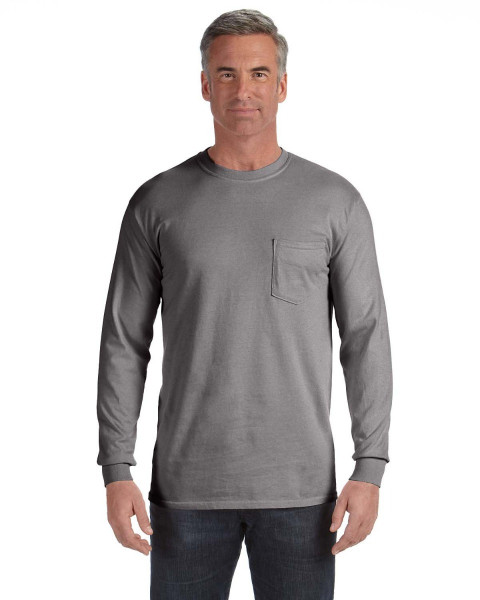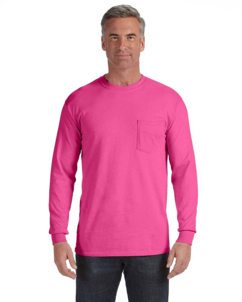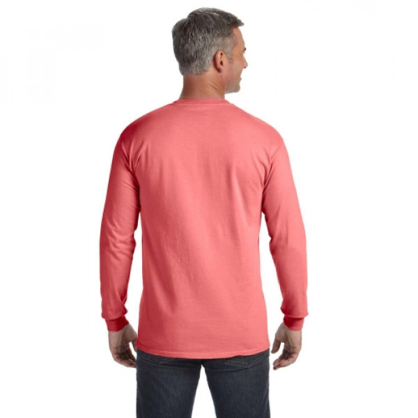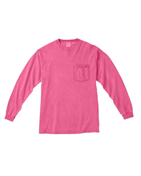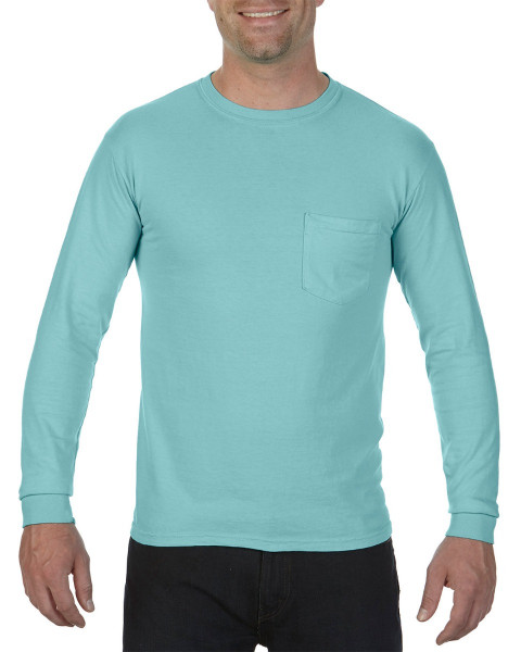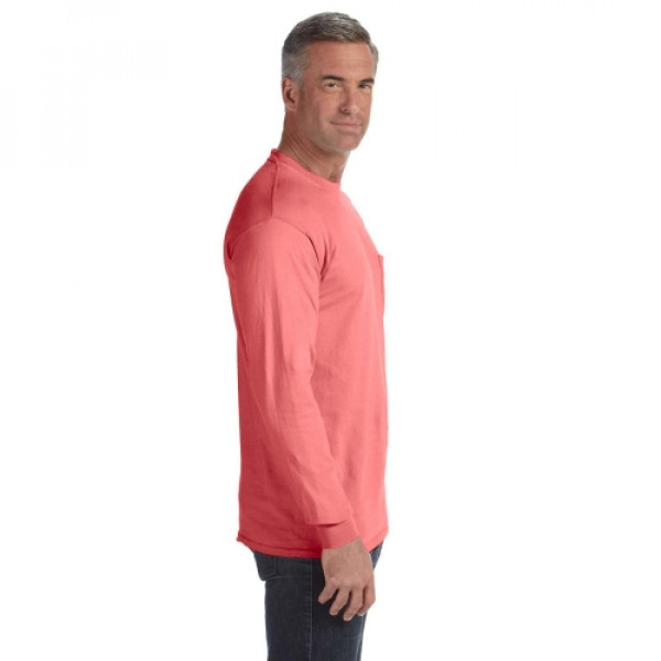 The Comfort Colors Long Sleeve Pocket T-Shirt is made of substantial 6.1 oz., 100% ringspun cotton. This preshrunk, garment-dyed fabric is super soft and cozy. Yuor logo will look great on the pocket of this promotional t-shirt. ::Unisex styling ::Set-in sleeves::Double-needle stitched collar and bottom hem::Shoulder-to-shoulder taping::Left-chest pocket::6.1 oz.; Ribbed collar and cuffs