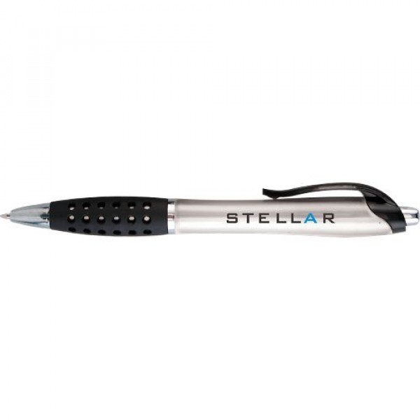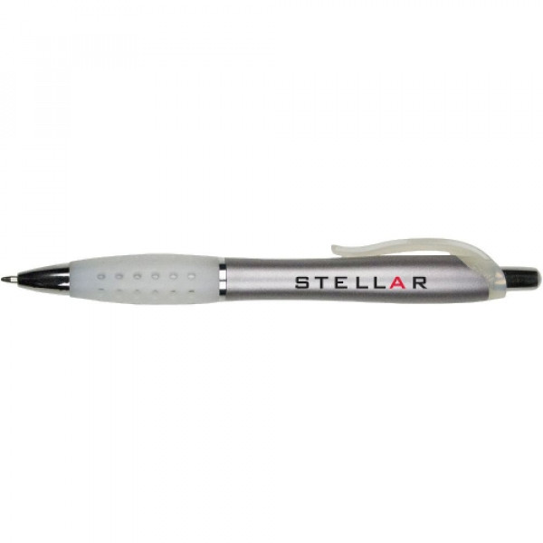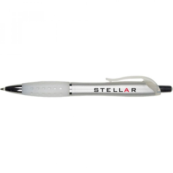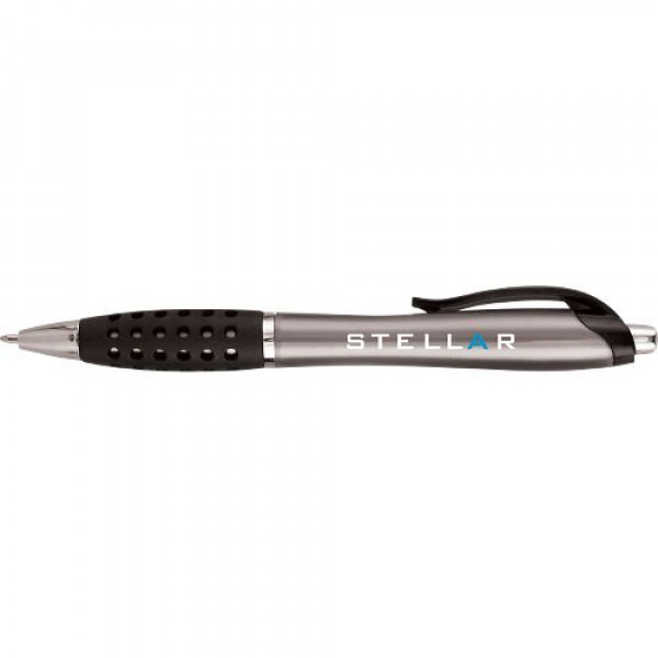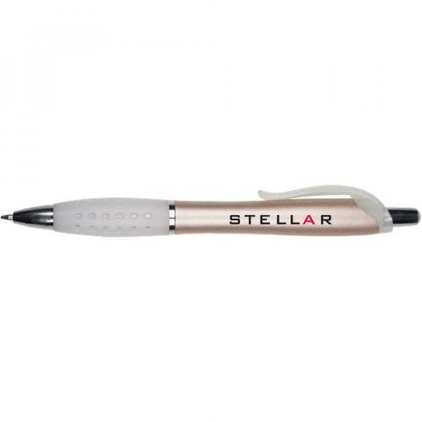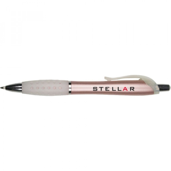 ::Distinctive pearl effect contoured barrel::Web design contoured rubber gripper::Black plastic fashion clip::Chrome accented findings