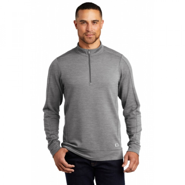Our first Luuma style for him. This 1/2-zip is designed for home-to-gym (and back again) style and comfort.::7.1-ounce, 57/38/5 modal/poly/spandex fleece::OGIO heat transfer label for tag-free comfort::Self-fabric cadet collar::Coil zipper::Seaming details at sleeves::Side panel details::Open hem::Reflective O heat transfer on front left hem