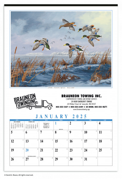 Outdoor enthusiasts will appreciate this calendar's life-like images of waterfowl and game birds created by renowned wildlife artist David Maass. The FSC® label means that the materials used for this product come from well-managed FSC®-certified forests and other controlled sources.