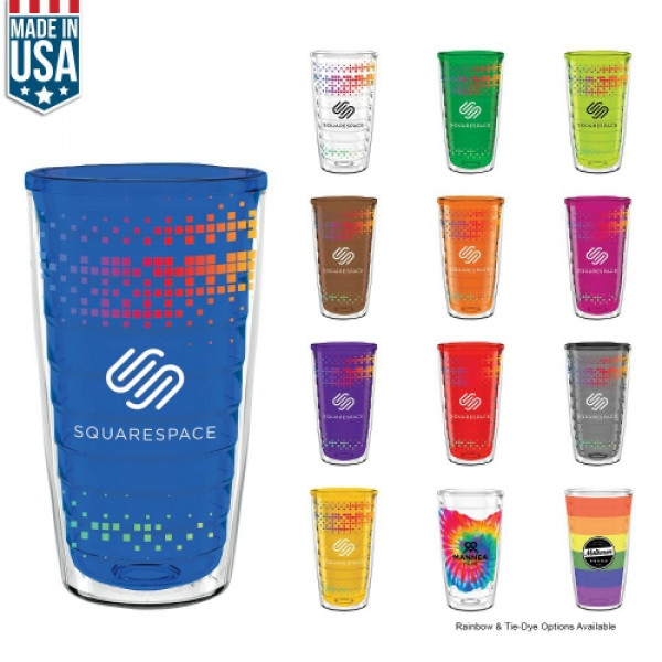 ::Renowned Tritan (TM) plastic is crystal clear and impact & shatter resistant::Decoration is sealed between the two walls; protecting it from wear::Which is your favorite decoration: Clear or colored? Embroidered or dome?::Optional inserts: glitter, diamond and chrome::Optional gift boxes available for additional fee: single, 2-pack or 4-pack::Double wall: does not sweat when cold or burn your hand when hot::Dishwasher, freezer, and microwave-safe::Optional lid and matching 9" straw for additional charge. ::Made in the USA::BPA Free, meets FDA requirements, and Proposition 65 Compliant