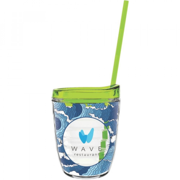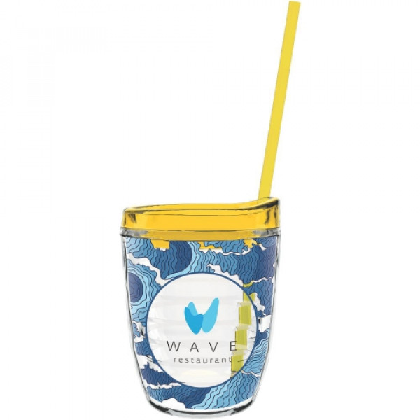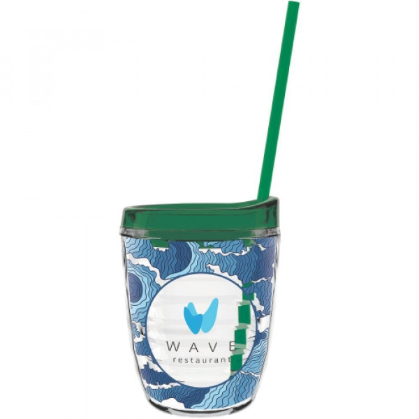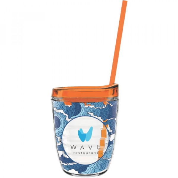 ::Renowned Tritan (TM) plastic is crystal clear and impact & shatter resistant::Decoration is sealed between the two walls; protected it from wear::What is your favorite decoration: Full color, embroidered or dome?::Optional inserts: glitter, diamond and chrome::Optional gift boxes available for additional fee: single, 2-pack or 4-pack::Double wall: does not sweat when cold or burn your hand when hot::Dishwasher, freezer, and microwave-safe::Colored lid and matching 9" straw included::Made in the USA::BPA Free, meets FDA requirements, and Proposition 65 Compliant