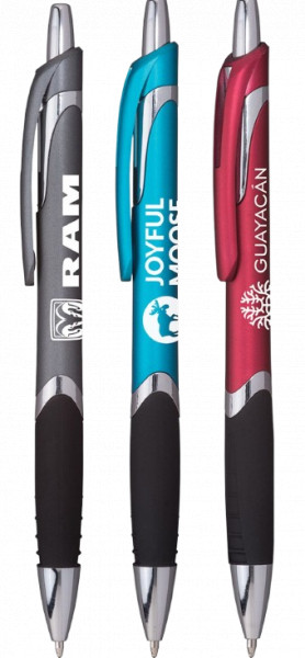 Add a touch of fashion-forward flair to your next branded giveaway with this sleek, eye-catching pen. Designed for comfort and style, it features shimmering fashion colors, silver accents, and a deeply textured grip. This promotional product is perfect for customizing with your logo and making a lasting impression.