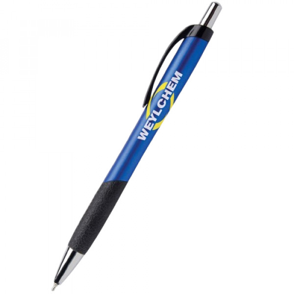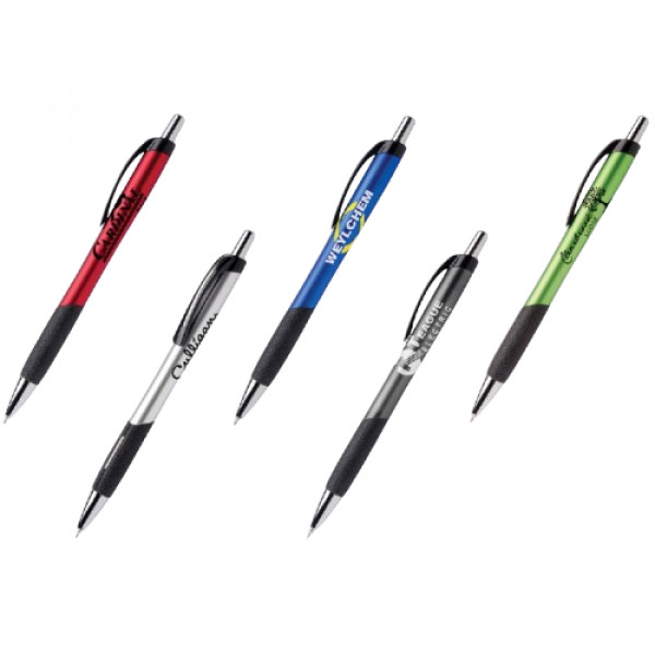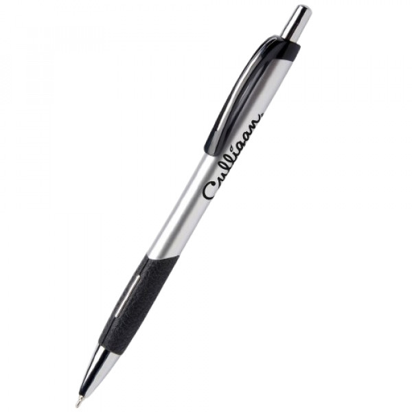 Add a touch of sophistication to your next promotional campaign with this sleek pen featuring shimmering metallic finishes contrasted by bold black and chrome accents. The ergonomic design and leather-look grip provide a refined, comfortable writing experience, while supersmooth hybrid ink ensures effortless strokes. A custom-branded pen like this is sure to leave a lasting impression.