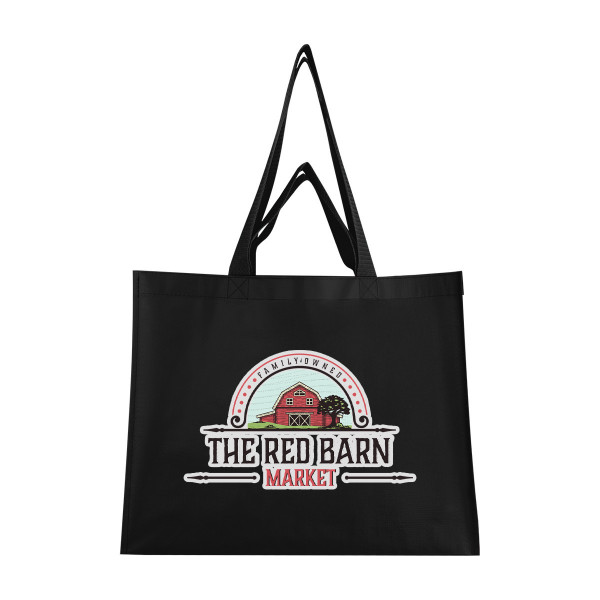 - Made of 120-gram laminated non-woven, coated water-resistant, recycled polypropylene