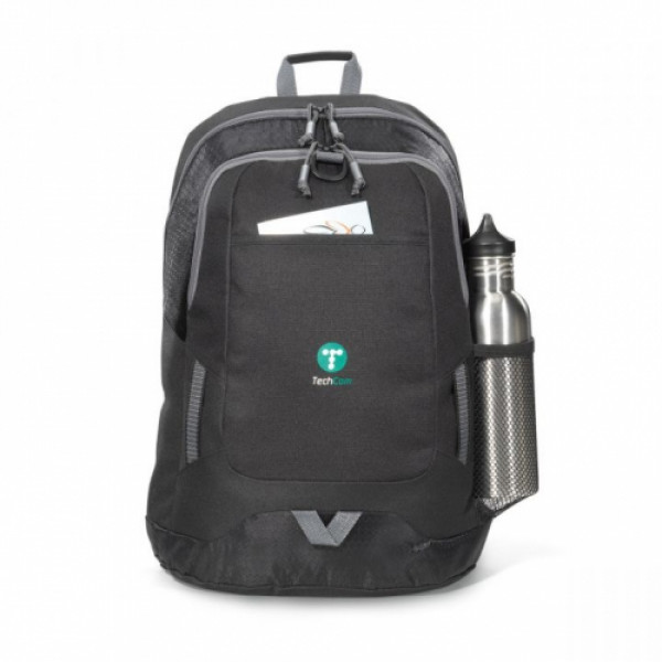 Carry your workday essentials with ease in this versatile laptop backpack. Designed to fit laptops up to 15”, it offers smart organization with a padded laptop sleeve, tablet pocket, and interior organizer. A mesh water bottle pocket and padded, adjustable shoulder straps add everyday convenience. As a promotional product, this backpack can be custom decorated or branded to showcase your logo while providing lasting functionality.