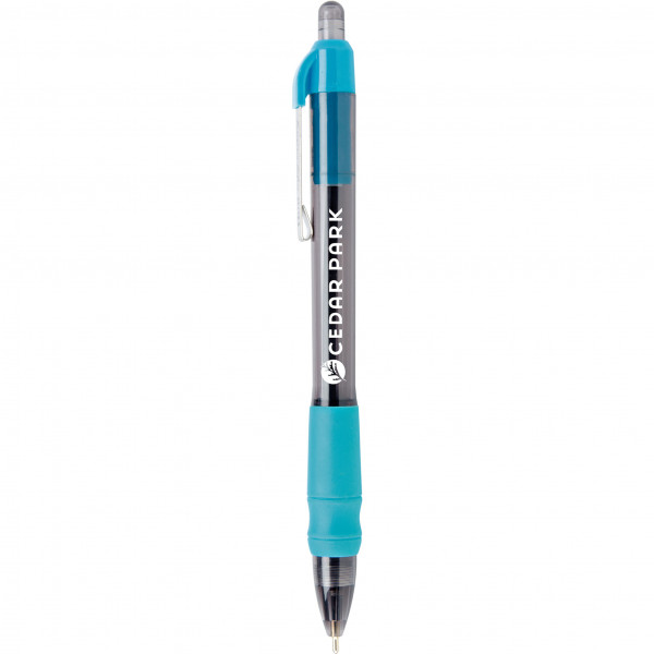Patented hybrid ink and a uniquely designed rubber comfort grip deliver a smooth and enjoyable writing experience with every use. Featuring translucent black barrels accented with vibrant tropical colored trim and a sleek metal clip, this eye-catching pen makes a great promotional product that can be custom branded for giveaways, events, or office use. Choose between blue MaxGlide hybrid ink or black anti-fraud ink for secure and reliable writing.