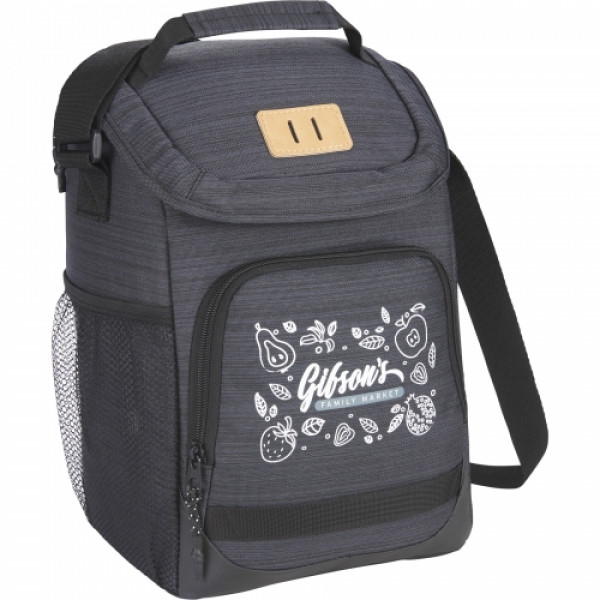 The Mayfair 12 Can Cooler is ideal for group events and company outings. With a 12-can capacity, store snacks and beverages in the main compartment, zippered front pocket, or mesh side pocket. Its black zipper pullers can be swapped with red or olive pullers to provide a colorful, custom look. The Mayfair 12 Can Cooler features a front vinyl lash-tab, a PEVA lining, an adjustable strap, and an interior ID label.