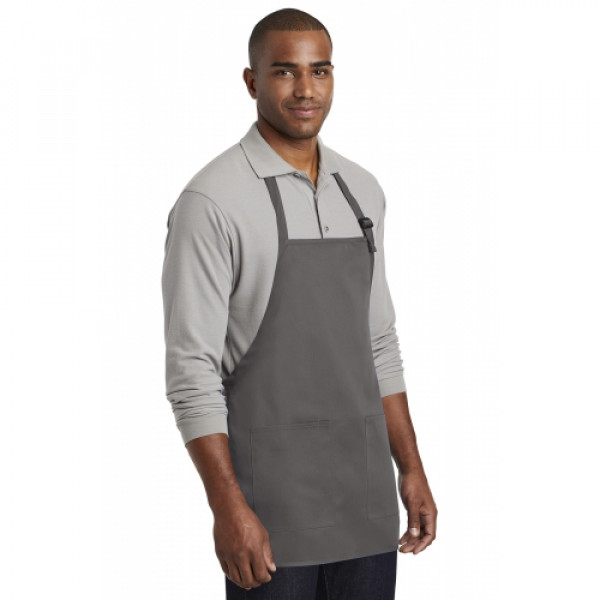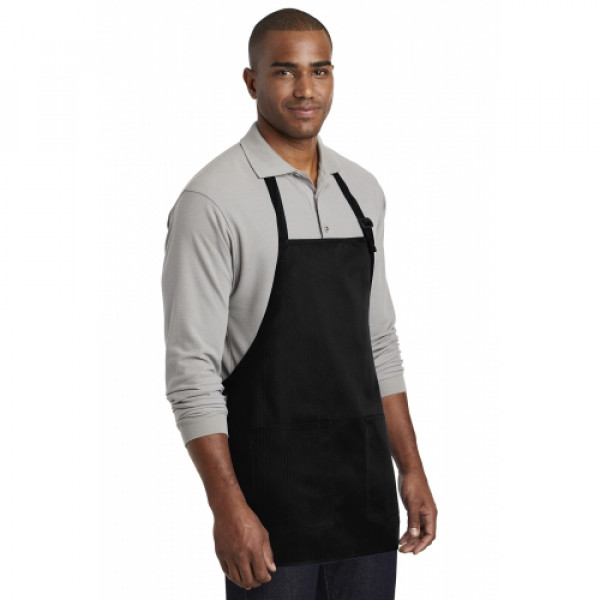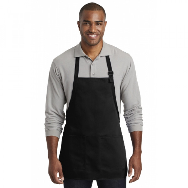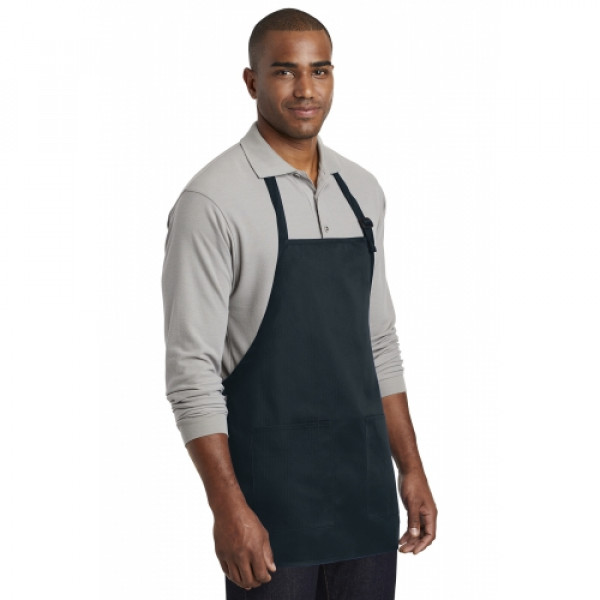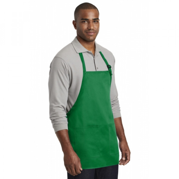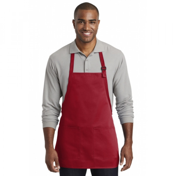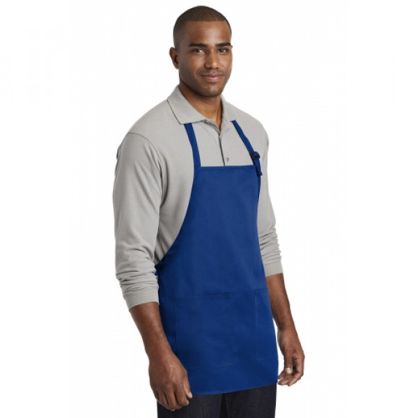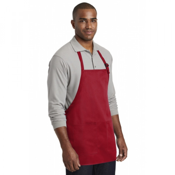 Stay looking neat and clean in this durable apron that features two easy-access pockets. ::7-ounce, 65/35 poly/cotton twill::Adjustable neck strap::Two front patch pockets, pen pocket::Self-fabric ties::Color-coordinates with CP80, C914 and CP45 caps ::Measures: 22"w x 24"