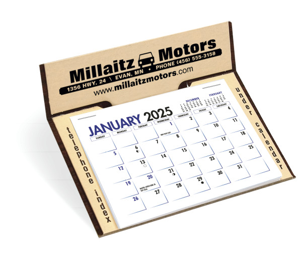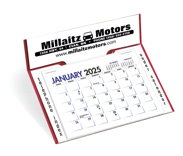 The Memo desk calendar offers convenient size and an advertising message that is boldly displayed at the top of the calendar. It offers outstanding value and ad visibility.