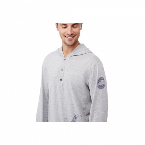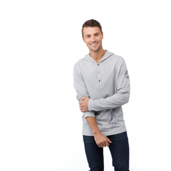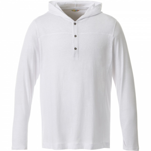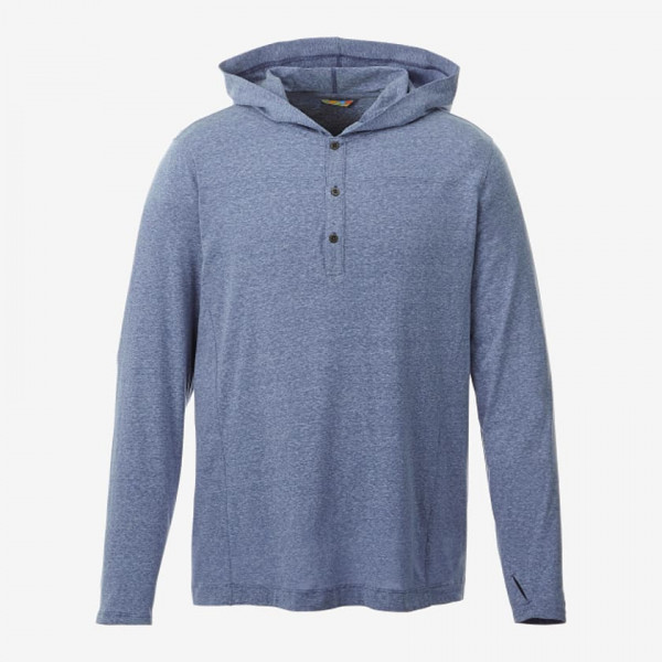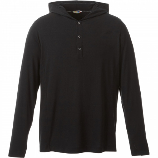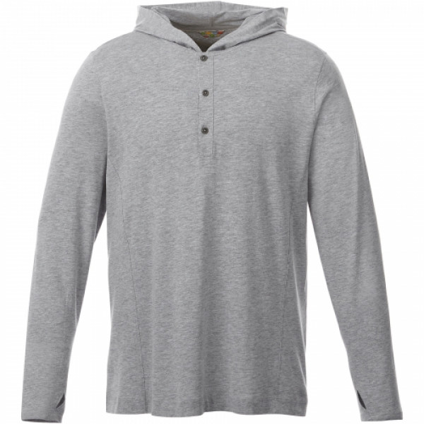::The Men's Ashland Knit Hoody provides an on-trend look in a lightweight, breathable fabric in sizes up to 5XL. ::The Ashland features a three button placket with metal buttons, twin-needle topstitching details and sleeve cuffs with thumb exits.