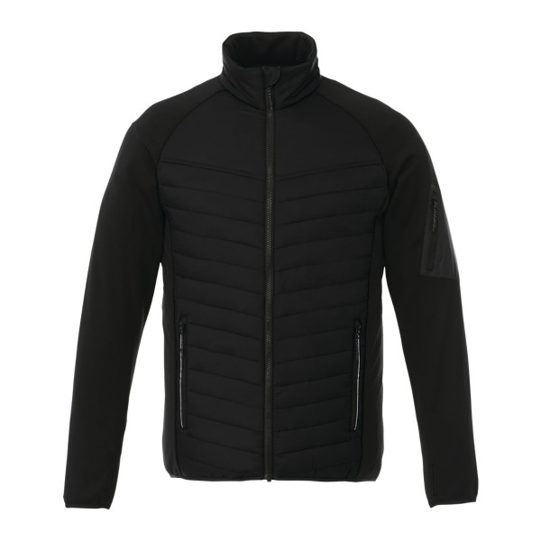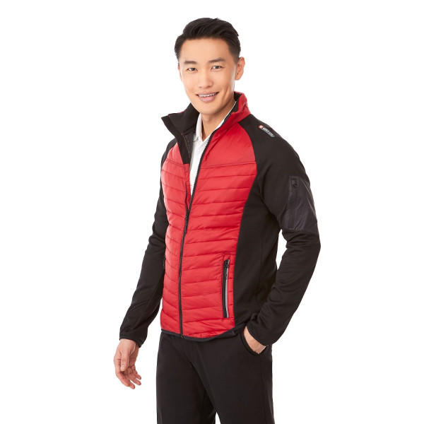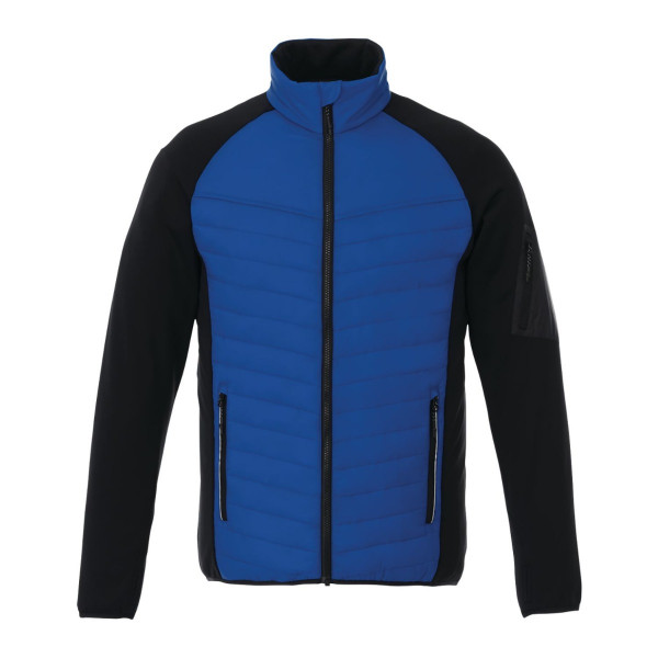 This men’s hybrid insulated jacket blends modern style with functional warmth, featuring a quilted body, brushed back knit sleeves, and cozy body panels. Designed for cold or rainy conditions, it includes a brushed polyester inner zip flap, chin guard, and pocket lining for added comfort. Available in bold color-block or tonal styles, this jacket also serves as a premium promotional product that can be custom decorated or branded to enhance team, corporate, or event apparel.
