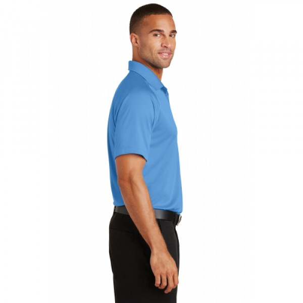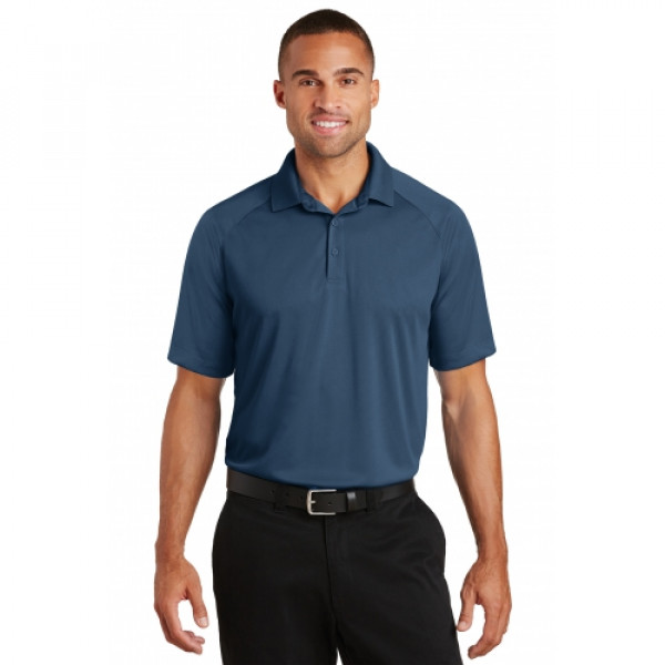 Cross over from your standard polo to this moisture-wicking performance style with its subtle horizontal rib texture and exceptional drape. Sport-inspired raglan sleeves allow easy movement.::5-ounce, 100% polyester::Flat knit collar::3-button placket::Dyed-to-match buttons::Open hem sleeves