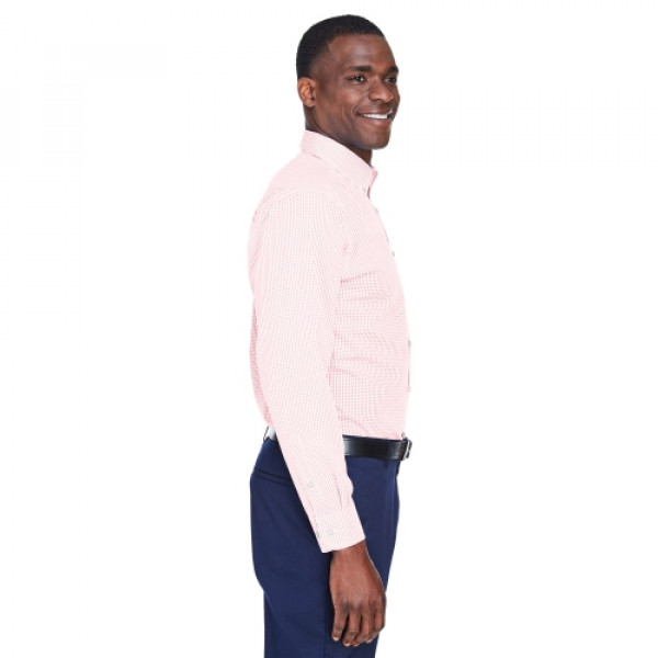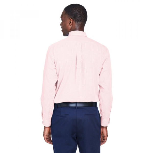 ::3.4 oz., 55% cotton, 45% polyester::Fine yarn count shirting::True Non-iron performance straight from the dryer::stain release finish::Classic Fit for professional appearance::Patented pucker-free taped seams::Fused collar cuffs and placket::Split back seam with bias cut back yoke::rolled button-down collar::adjustable Comfort Collar for up to an inch of stretch at neck::left-chest pocket::pearlized buttons