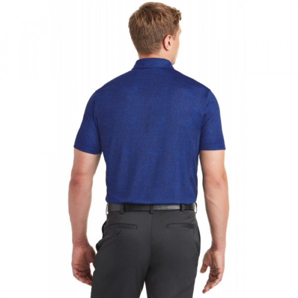The allover crosshatch print adds a retail, technical look to this polo, while the Dri-FIT fabrication ensures breathable comfort. Design details include a self-fabric collar, three-button placket and open hem sleeves. ::A contrast heat transfer Swoosh design trademark is on the left sleeve::Choose from 4 colors::Made of 5.29-ounce, 100% polyester Dri-FIT fabric