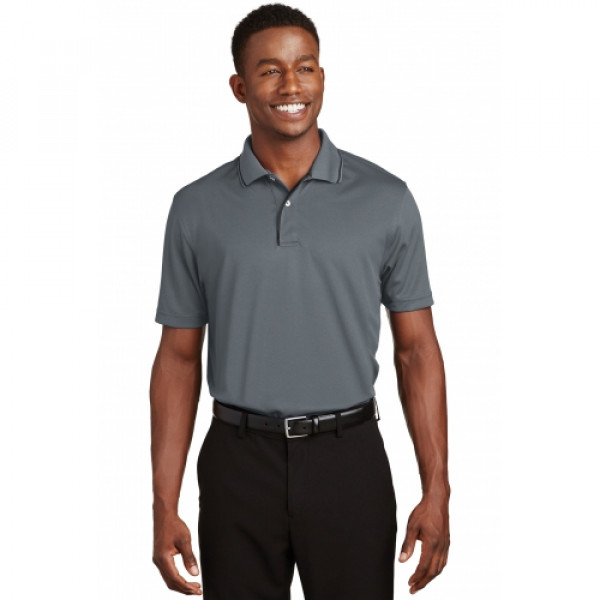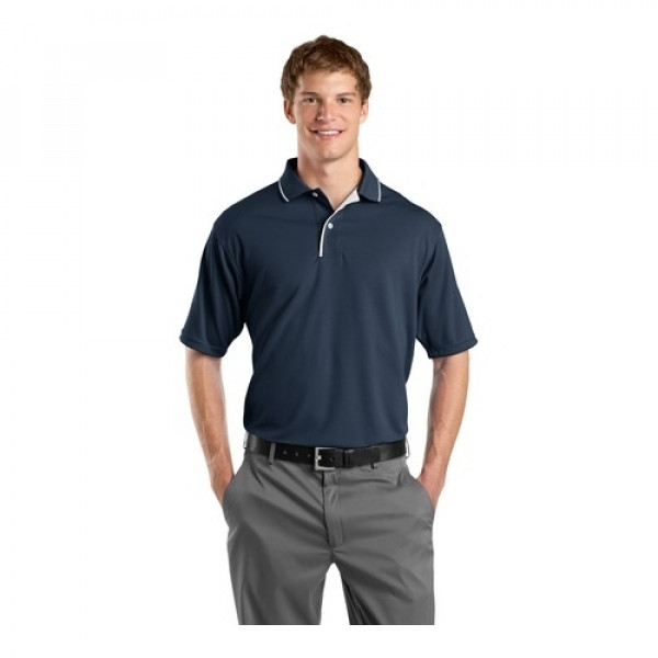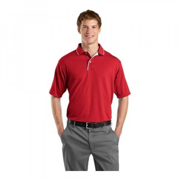 A stylishly tipped collar and piping combine with moisture-wicking Dri-Mesh technology for exceptional performance all day long. | 3.5-ounce 100% polyester double mesh Double-needle shoulders and hem Taped neck Striped placket and collar 2-button placket with pearlized buttons Single piping on gussets*Due to the nature of 100% polyester performance fabrics special care must be taken throughout the screen printing process.