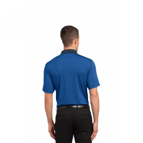 This made-to-move polo has plenty of stretch and wicks moisture for superb performance. Two-color fine stripes instantly upgrade your day-to-day look.::5.3-ounce, 94/6 poly/spandex yarn-dyed fine stripe jersey::Solid contrast flat knit collar::3-button placket::Dyed-to-match buttons::Open hem sleeves::Side vents