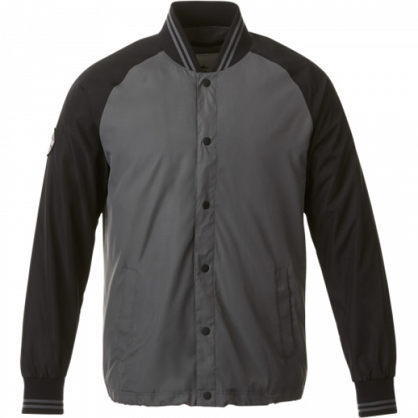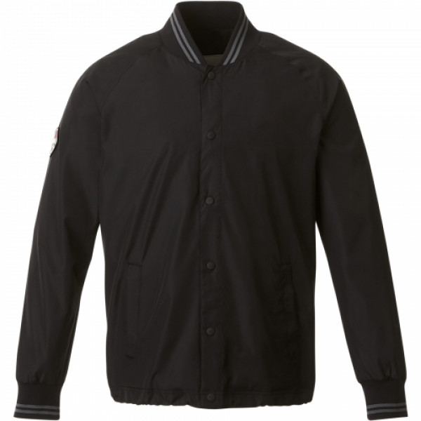 The Men's Roots73 Hargrave Varsity Jacket is a lightweight jacket with a classic look. The front placket has snap closures and the cuffs and collar feature a rib knit. The articulated elbows and the ergonomic sleeves deliver a comfortable fit and ease of movement. An interior pocket keeps devices handy.