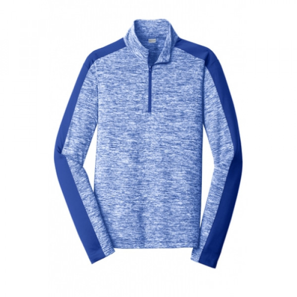 This lightweight pullover locks in color, wicks moisture, resists snags and has an amped up colorblock look.::4.1-ounce, 100% polyester yarn-dyed jersey with PosiCharge technology (Electric Heather)::4.7-ounce, 100% polyester jersey with PosiCharge technology (solid)::Removable tag for comfort and relabeling::Cadet collar:;Reverse coil zipper::Colorblock on shoulders and sleeves::Set-in sleeves::Open cuffs and hem
