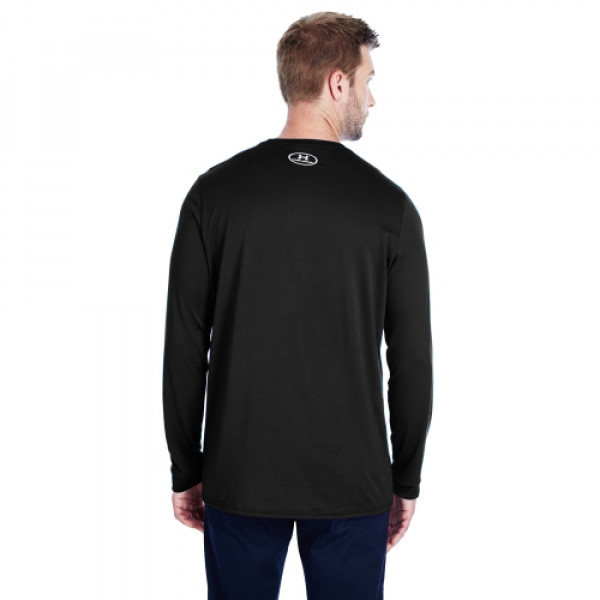 Fabric:::100% polyester::UA Tech™ fabric is quick-drying, ultra-soft & has a more natural feel::Moisture Transport System wicks sweat and dries really fast::Anti-odor technology prevents the growth of odor-causing microbesFeatures:::Four-way stretch fabrication allows greater mobility in any direction::Improved Fit: plus 1 1/2" in body length, plus 2" across chest, plus 2" around bottom opening::Updated set-in sleeves::UA logo on top front chest and back neck::Updated version of style 1268475