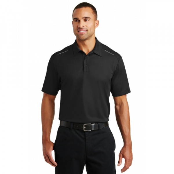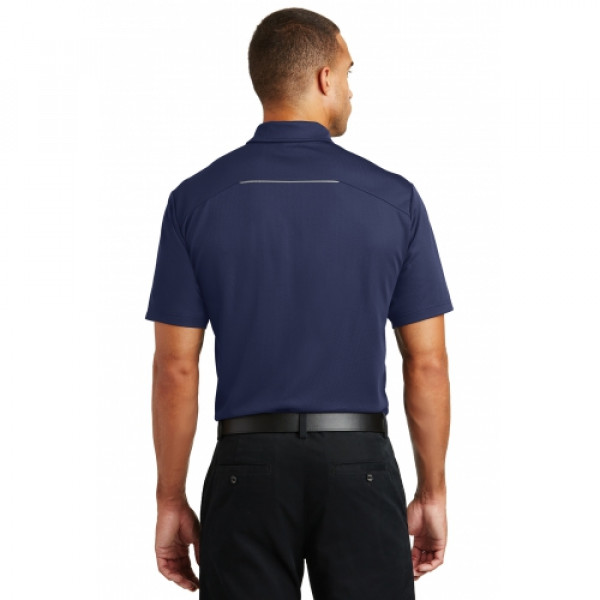 Fashioned from sleek closed-hole pinpoint mesh, this moisture-wicking, snag-resistant performance polo has eye-catching reflective details and minimal stitching for a clean look.::4.3-ounce, 100% polyester::Self-fabric collar::3-button placket with dyed-to-match buttons::Reflective piecing at shoulders and center back::Open hem sleeves::Side vents