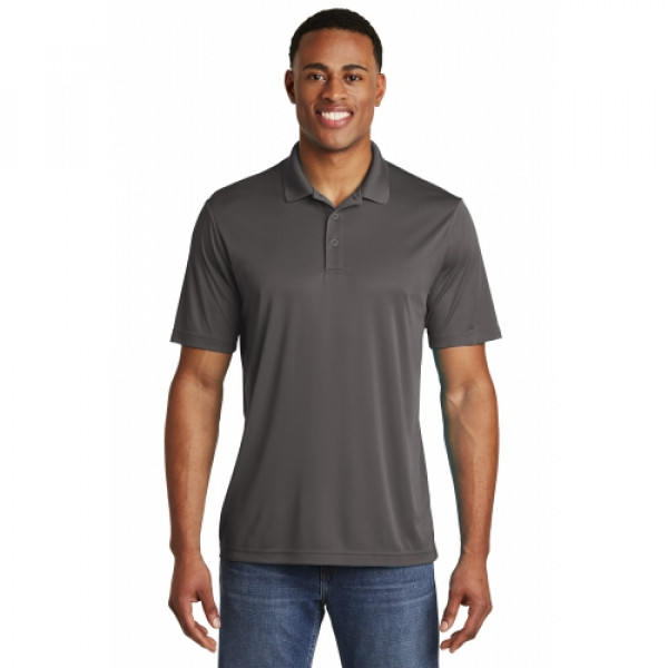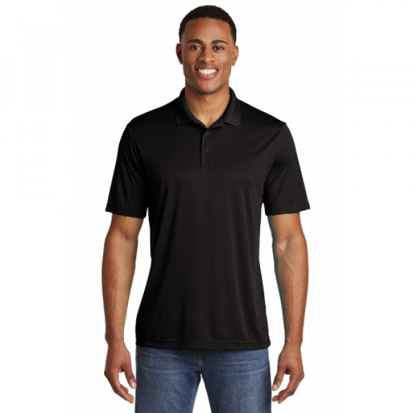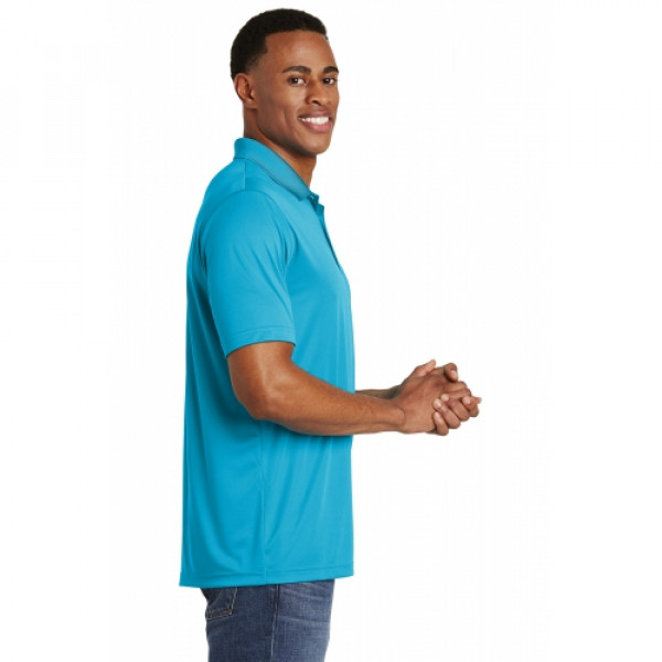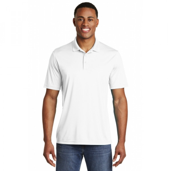 Our #1 performance tee fabric—offered in a color-locking, moisture-wicking polo—to expand your uniforming options.::3.8-ounce, 100% polyester interlock with PosiCharge technology::Flat knit collar::Removable tag for comfort and relabeling::Taped neck::3-button placket with dyed-to-match buttons::Set-in, open hem sleeves