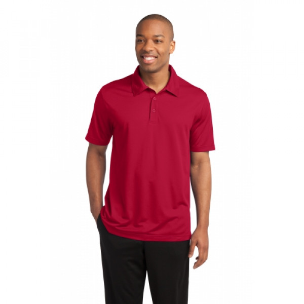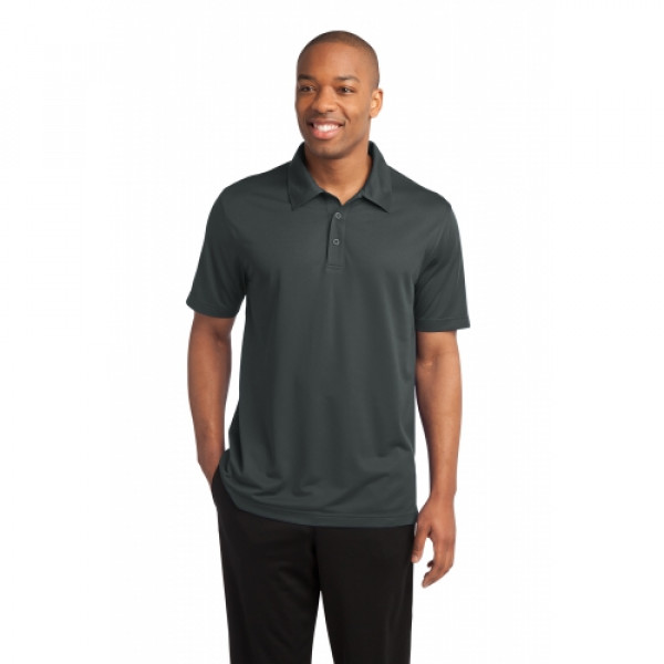 Subtle texture adds character without sacrificing breathability or snag resistance, while PosiCharge technology preserves colors and logos.::4-ounce, 100% polyester mesh with PosiCharge technology::4.3-ounce, 100% polyester mesh with PosiCharge technology (White)::Tag-free label::Self-fabric collar::3-button placket with dyed-to-match buttons::Set-in, open hem sleeves::Side vents