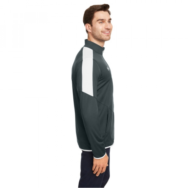Fabric:::100% polyester::Material wicks sweat and dries quickly::Durable knit fabric gives you the right warmth & still performsFeatures:::Colorblock detail with embroidered UA logo::Open hand pockets