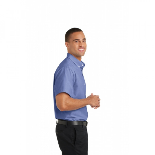 Look your best in a tried-and-true oxford that performs. Designed to resist and release stains, our SuperPro Oxford has a soft hand and a wrinkle-free finish to keep you looking neat and professional all day long.::4.6-ounce, 60/40 cotton/poly::Back shoulder pleats::Button-down collar::Left chest pocket