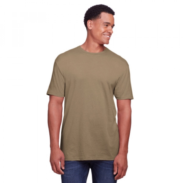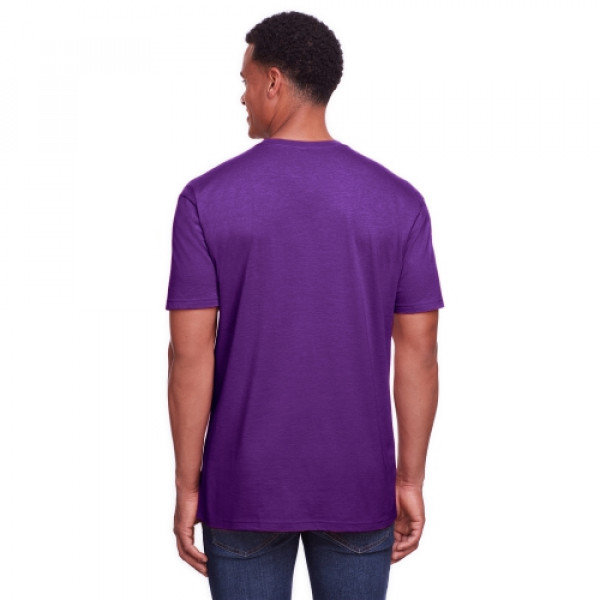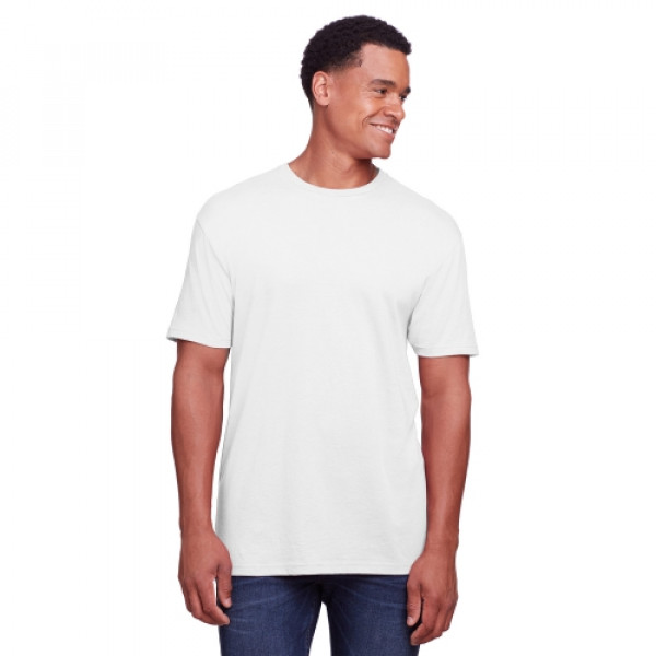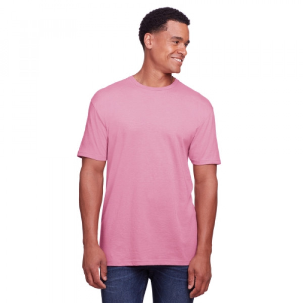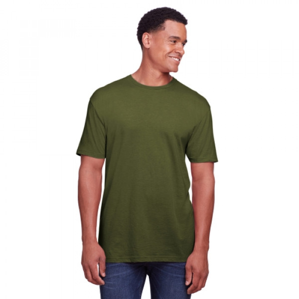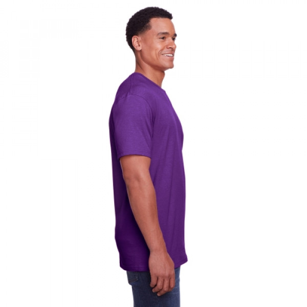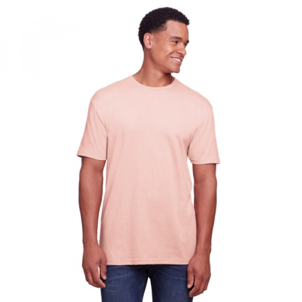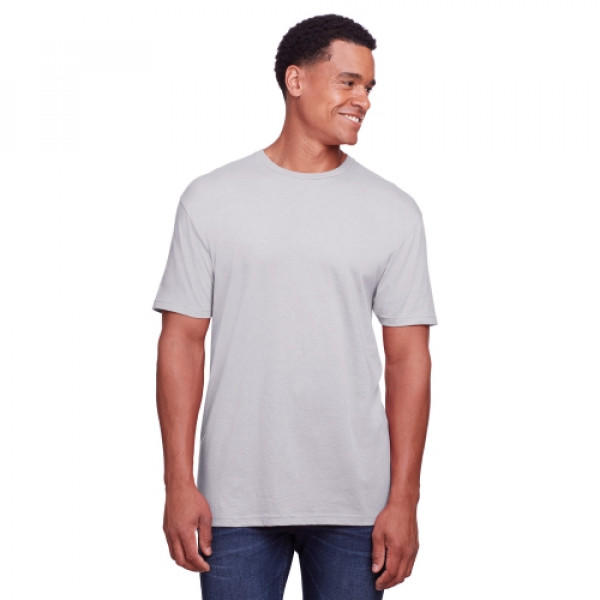::4.6 oz./sqyd::60% combed ring spun cotton, 40% polyester::High-stitch density for smoother printing surface::5/8" seamed collar::Taped neck and shoulders::Tear-away label::Double-needle sleeve and bottom hems::Quarter-turned to eliminate center crease::Modern-classic fit
