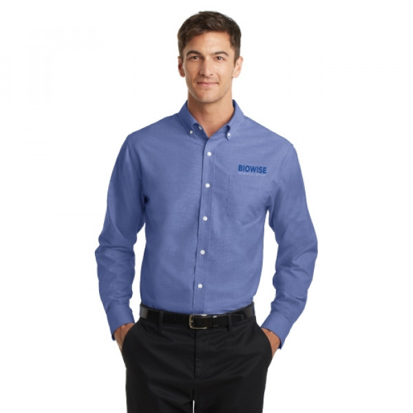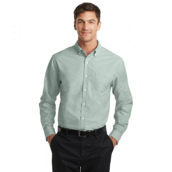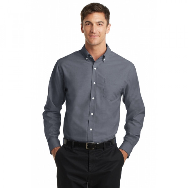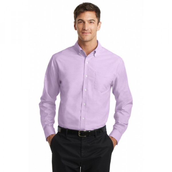 Look your best in a tried-and-true oxford that performs. Designed to resist and release stains, our SuperPro Oxford has a soft hand and a wrinkle-free finish to keep you looking neat and professional all day long.::4.6-ounce, 60/40 cotton/poly::Back shoulder pleats::Button-down collar::Left chest pocket::Rounded adjustable cuffs