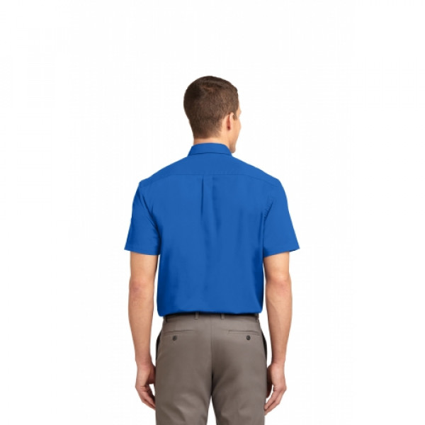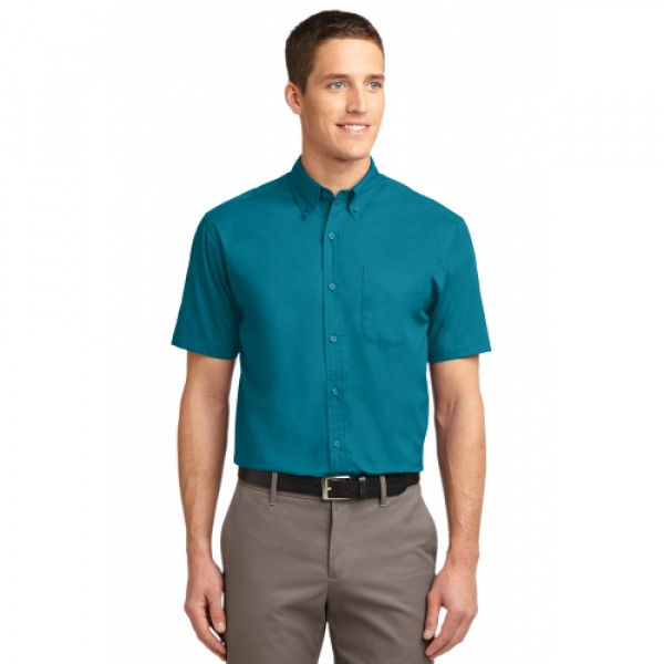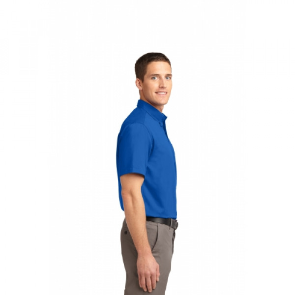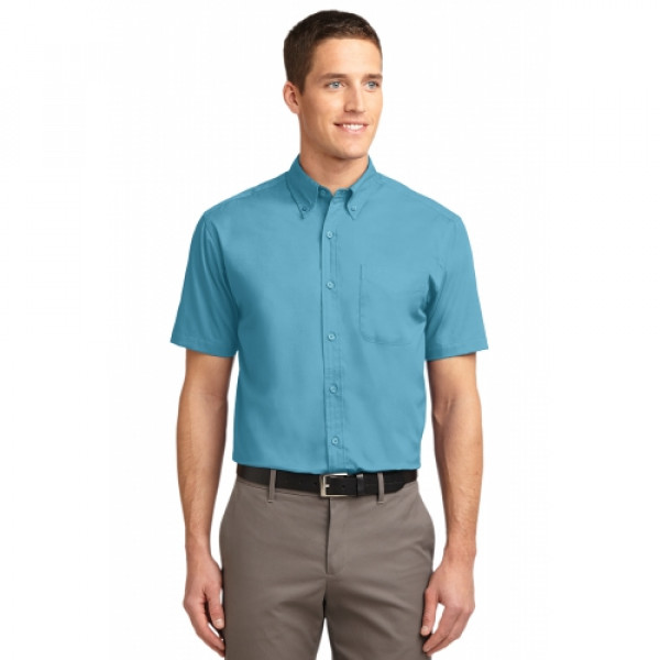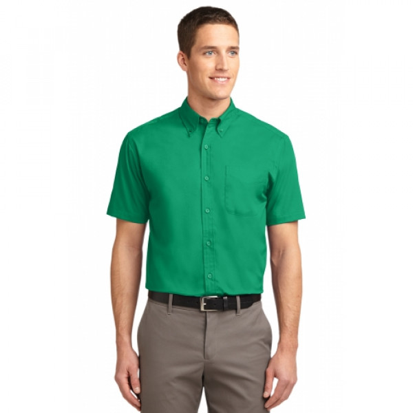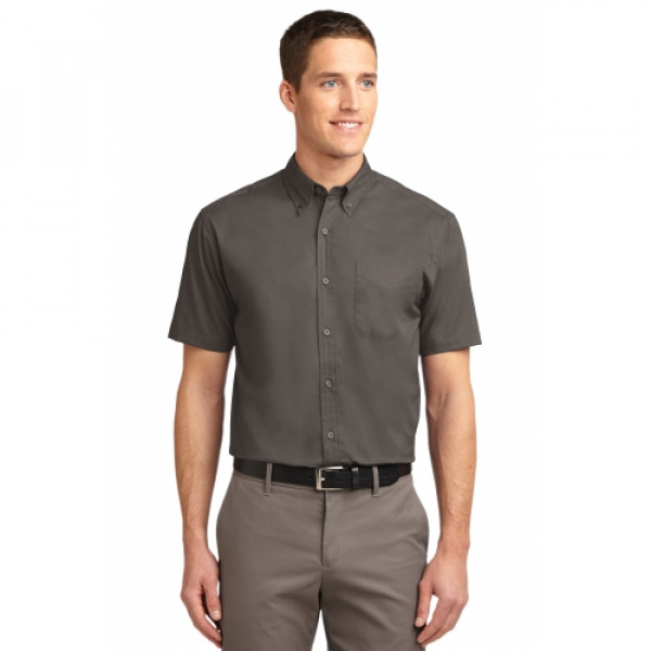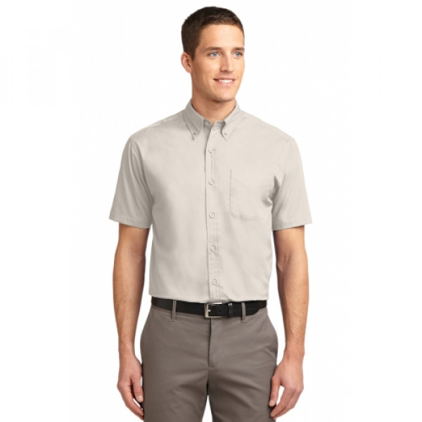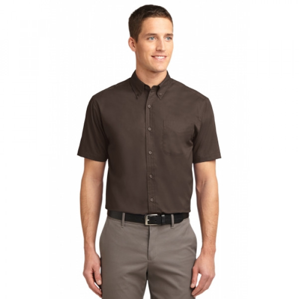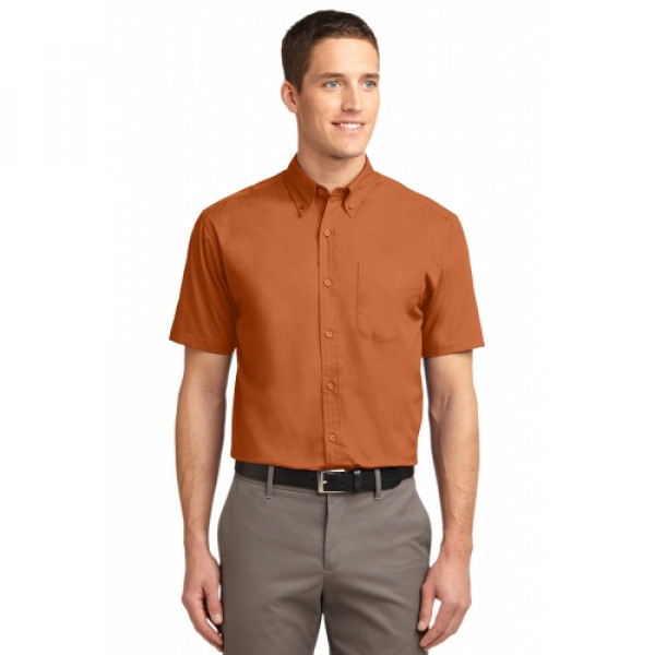 This comfortable wash-and-wear shirt is indispensable for the workday. Wrinkle resistance makes this shirt a cut above the competition so you and your staff can be, too.::4.5-ounce, 55/45 cotton/poly::Button-down collar::Dyed-to-match buttons::Left chest pocket::Back box pleat::White, Athletic Gold, Texas Orange, Red, Burgundy, Coffee Bean, Light Blue, Navy, Classic Navy, Steel Grey, Purple and Black have a Light Stone contrast neckband.::Light Stone and Royal have a Classic Navy contrast neckband.::Dark Green has a Navy contrast neckband.