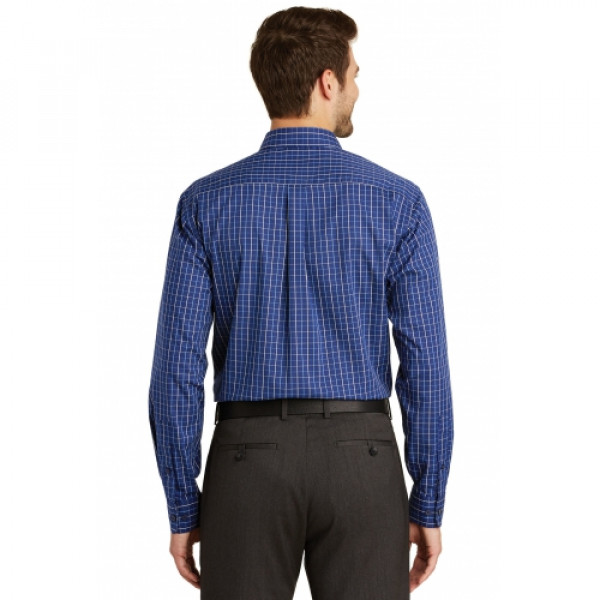 With a classic tattersall pattern, this poplin shirt adds variety to your work wardrobe. Specially finished for wrinkle resistance, it stays crisp from breakfast meetings to after-hours mixers.::3.5-ounce, 60/40 cotton/poly::Button-down collar with bias-cut details::Back box pleat::Dyed-to-match buttons::Left chest pocket::Rounded adjustable cuffs