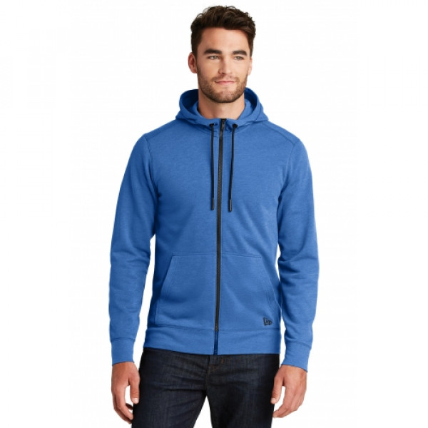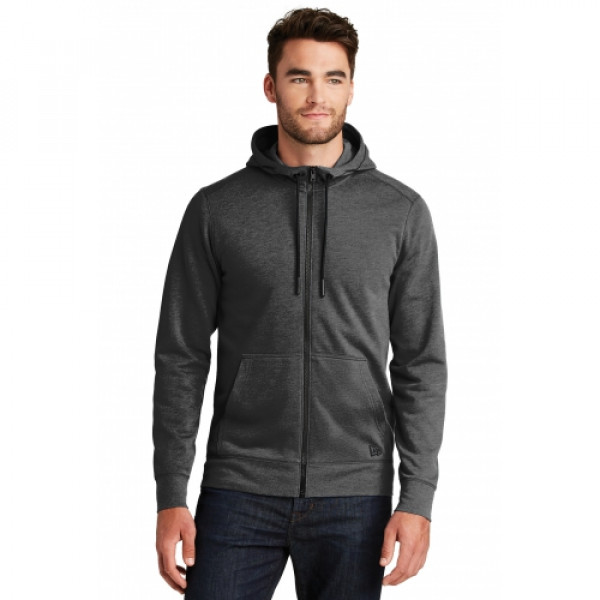 Designed for maximum comfort, this hoodie has a go-anywhere look complete with modern details.::7-ounce, 55/34/11 cotton/poly/rayon fleece::Coverstitched seams::3-panel hood::Heat transfer label for tag-free comfort::Embossed New Era neck and shoulder taping::Matte black grommets ::Hand-dipped, silicone-tipped drawcords::Zip-through neck::Exposed vislon zipper::Matte black zipper pull debossed with New Era flag logo::Rolled-forward shoulders::Front pouch pockets::Debossed silicone New Era flag logo on left pocket::Rib knit cuffs and hem
