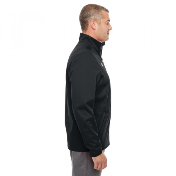 ::100% polyester::bonded two-layer soft shell material with a warm brushed inner layer::signature Moisture Transport System wicks sweat away from the body::rolled forward shoulder seams for unrivaled comfort::full-zip front with stand collar for extra coverage::secure zippered hand pockets::athletic loose fit::UA logo on right chest