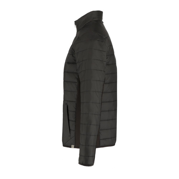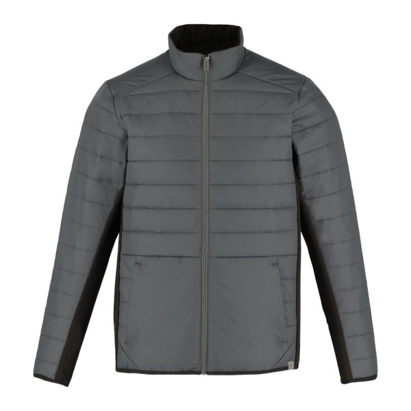 The Geneva Eco Hybrid Down Puffer Jacket features 100% recycled nylon body and PFC-Free water resistant coating. This eco-friendly men's jacket is light, with 100% recycled polyester soft fill insulation, High-tech minimalism can go a long way outdoors, especially when it looks this good. With its lightweight, compact and multi-pocket design, this full zip jacket offers active people a versatile and stylish apparel solution that affords greater mobility for its user. One percent of all Eco sales are donated to environmental profits through a partnership with 1% For The Planet.