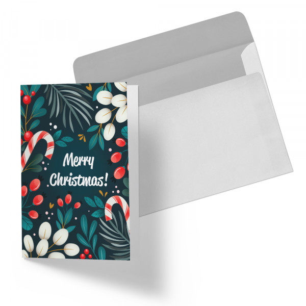 Merry Christmas Candy Canes - 5" x 7" Double Sided Folded Notecards with Printed Envelopes - 110#