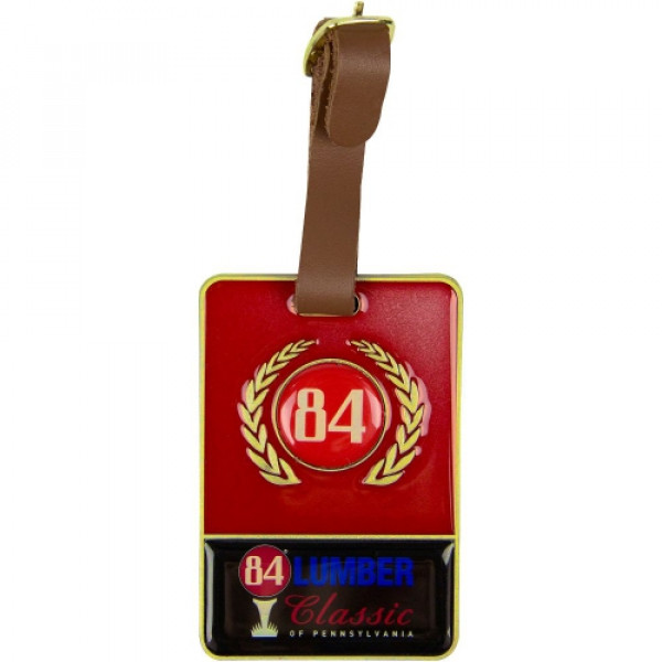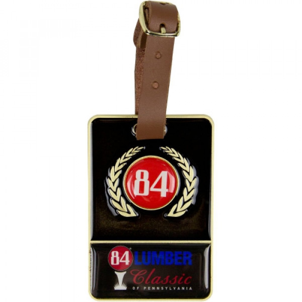 ::Low setup charges and individual name drop programs for member guest or invitational tournaments::Durable epoxy dome keeps logo protected::Metal bag tags::Full grain leather strap included