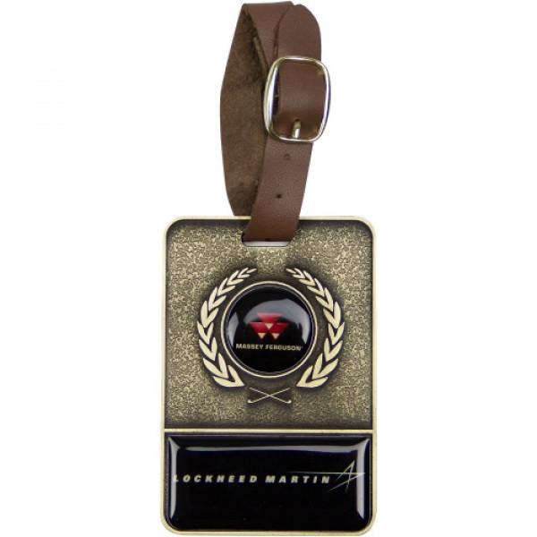 ::Low setup charges and individual name drop programs for member guest or invitational tournaments::Durable epoxy dome keeps logo protected::Metal bag tags::Full grain leather strap included