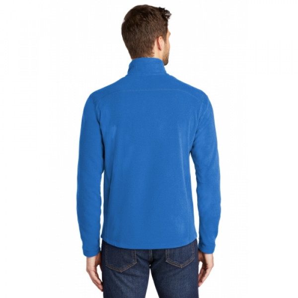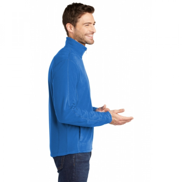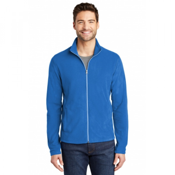 For cool-to-cold weather, this lightweight microfleece jacket delivers warmth without unnecessary bulk. Perfect alone or layered, it's a great value and it features clear coil zippers with dyed-to-match chain stitching and taping. (Grey chain stitching on White.) An anti-pill finish helps preserve a clean appearance.::4.6-ounce, 100% polyester microfleece::Non-zippered front pockets::Open cuffs and hem