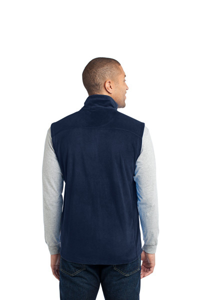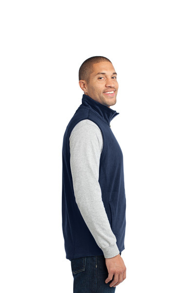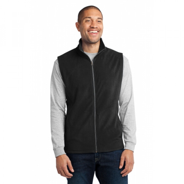 Add a layer of warmth with our extra soft, cozy microfleece vest. Lightweight, with an anti-pill finish, this cool-weather essential is also easy on the budget.::4.6-ounce, 100% polyester microfleece::Clear coil zipper with dyed-to-match chain stitching and taping; grey chain stitching on White::Non-zippered front pockets::Open hem