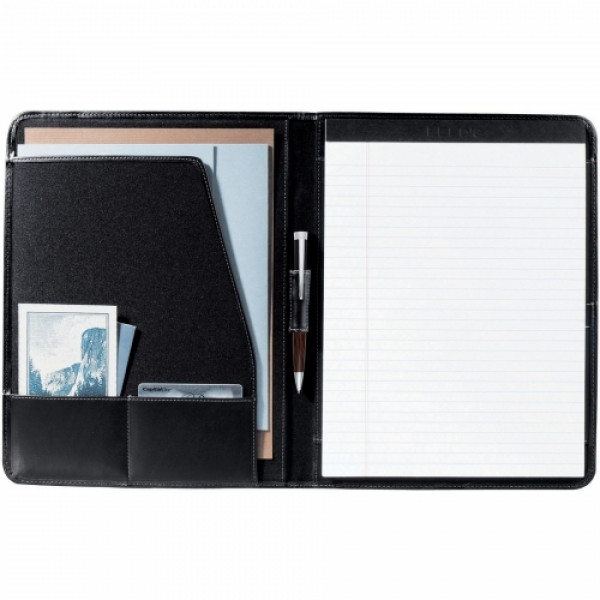 ::Interior organizer includes business card pockets, elastic pen loop. ::Front document pocket. ::Includes 8.5" x 11" writing pad.::Includes gift box.::Refills available at www.leedsworldrefill.com Refill item number: 9091-01::Pen not included.