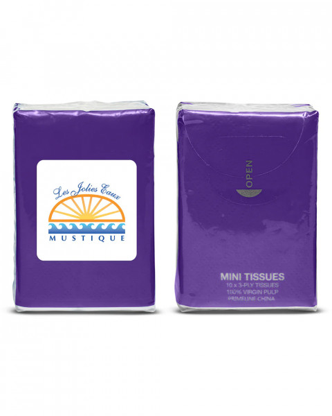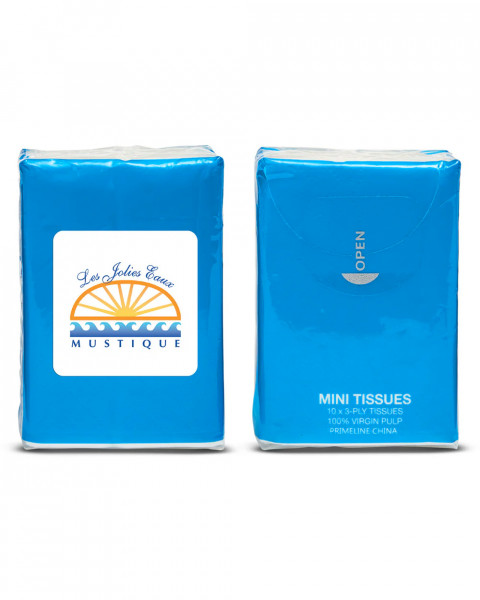- Mini tissue pack in resealable PE plastic pouch