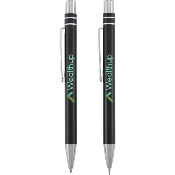 Make a lasting impression with the Mod Recycled Pen and Pencil Gift Set, a sleek and eco-conscious promotional product that can be custom decorated or branded. Combining modern design with everyday practicality, this set features a smooth matte finish, chrome accents, and precise writing instruments—all packaged in a stylish black gift box. Perfect for corporate gifting or giveaways, it also supports environmental initiatives, making every gift a statement for both style and sustainability.