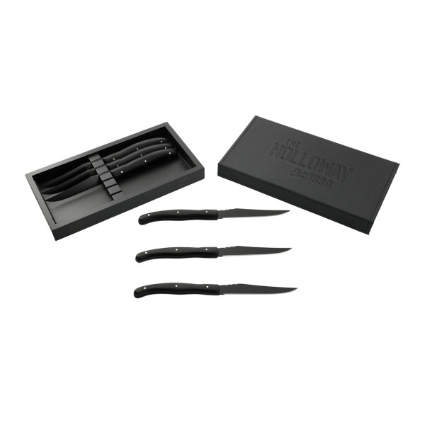 The Modena Black Knife Set is a traditional favorite that includes a six-piece knife set in a wood case.
